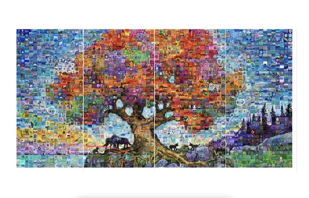 But: Our 3 tiles did make it to the beautiful “Love & Family” mural (perfect!). Here is what we painted….. (Terry, Paula, and myself in that order…..)